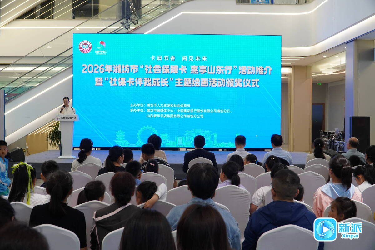 新派訊 4月25日下午,“卡潤(rùn)書香 閱見未來”2026年濰坊市“社會(huì)保障卡 惠享山東行”活動(dòng)推介暨“社??ò槲页砷L(zhǎng)”主題繪畫活動(dòng)頒獎(jiǎng)儀式在新閱廣場(chǎng)舉行?;顒?dòng)由濰坊市人力資源和社會(huì)保障局主辦,濰坊市融媒體中心、中國建設(shè)銀行濰坊分行、山東新華書店集團(tuán)有限公司濰坊分公司聯(lián)合承辦。