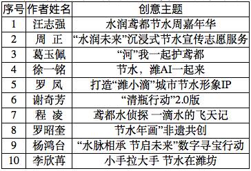城市節(jié)水宣傳創(chuàng)新創(chuàng)意十佳“金點(diǎn)子”名單