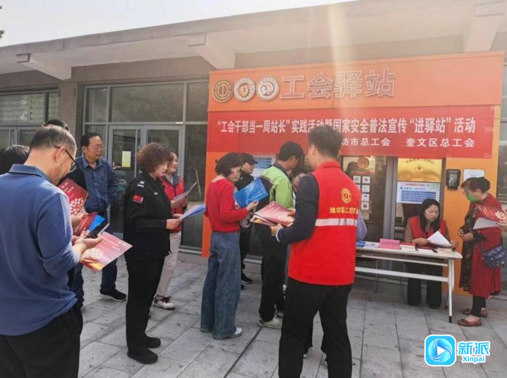 4月17日,濰坊市總工會聯(lián)合奎文區(qū)總工會在濰坊1532文化產(chǎn)業(yè)園工會驛站舉辦國家安全普法宣傳活動。圍繞“4.15全民國家安全教育日”主題,工作人員面向廣大職工群眾發(fā)放普法宣傳手冊,進行國家安全法專題普法宣傳。驛站門口布設(shè)了法律咨詢臺,由專業(yè)律師現(xiàn)場提供免費法律咨詢服務,面對面解答勞動權(quán)益保障等重點問題。此次普法宣傳活動以更加“接地氣、貼民心”的形式,將法律知識送到職工群眾身邊。